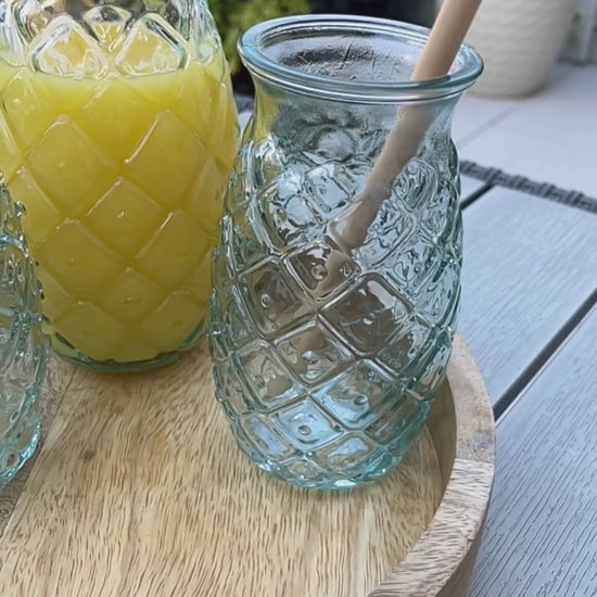 The distinctive pineapple shape adds a playful touch to any occasion—whether you're serving vibrant cocktails, fresh juice, or iced tea at a BBQ or spring gathering. They are fun, stylish, and durable, ensuring every sip feels like a vacation! Complete your setup with our Bamboo Drinking Straws. These glasses are conveniently dishwasher proof.