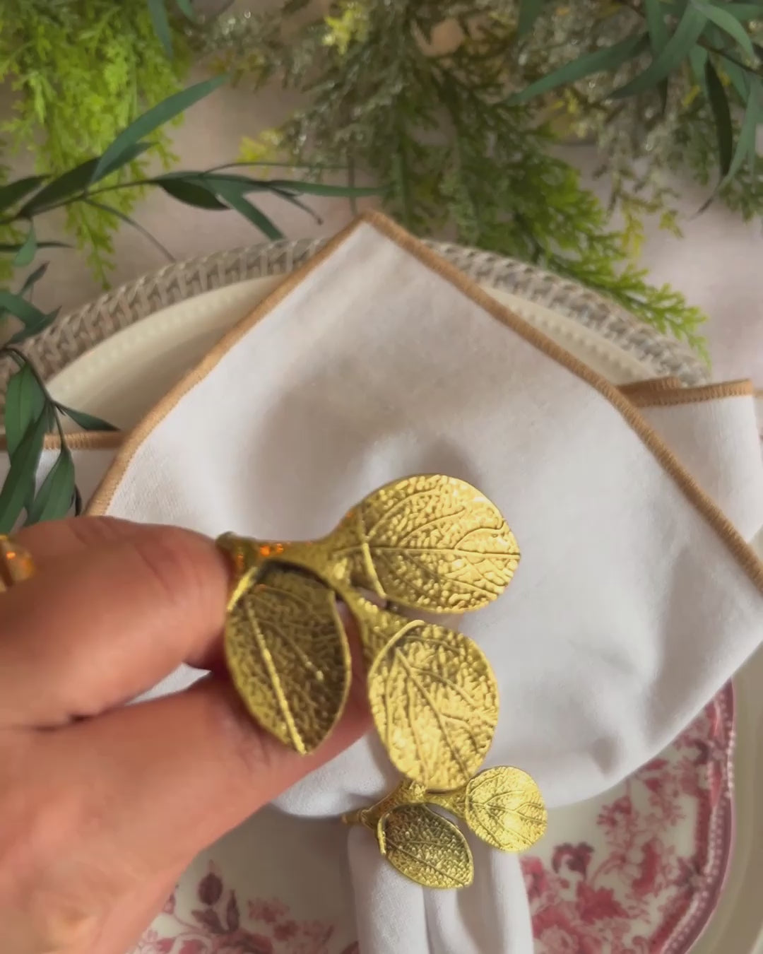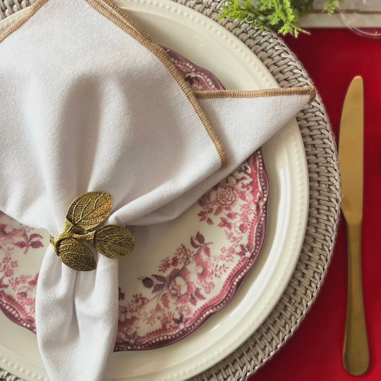 Timeless Elegance: Brass Leaf Napkin Ring Set (6pcs)