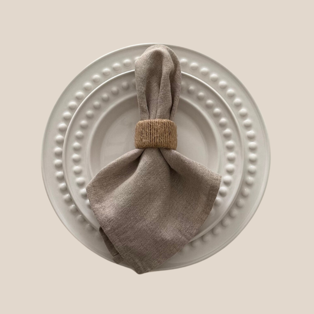 Add a coastal charm to your table with the Ocean Jute Napkin Ring Set. This set includes four beautifully crafted napkin rings made from durable jute, a natural fiber known for its strength and eco-friendly qualities. The simple yet stylish design features a textured, woven finish that gives each napkin ring a rustic, beachy feel. The neutral tones of jute complement a variety of table settings, from casual everyday dining to more relaxed, coastal-inspired gatherings. Lightweight and versatile, the Ocean Jute Napkin Rings are the perfect accessory to bring a fresh, organic touch to your table decor.