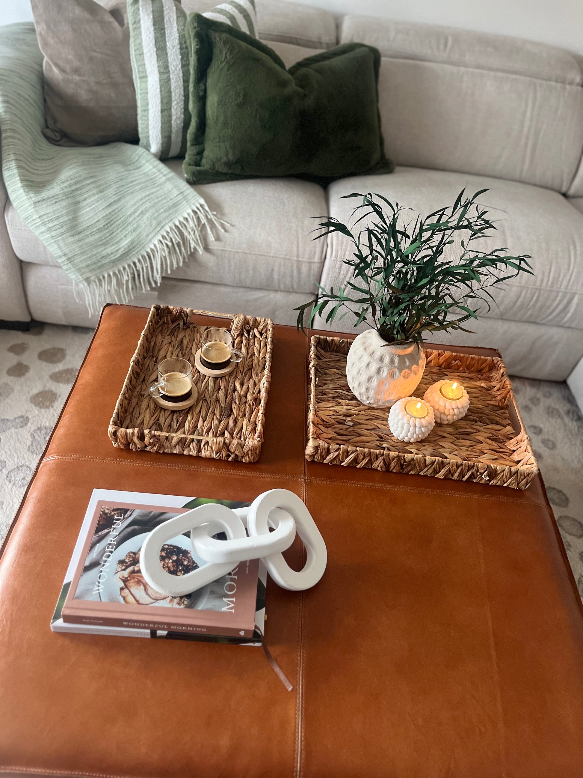 - Ideal for coffee table or ottoman décor