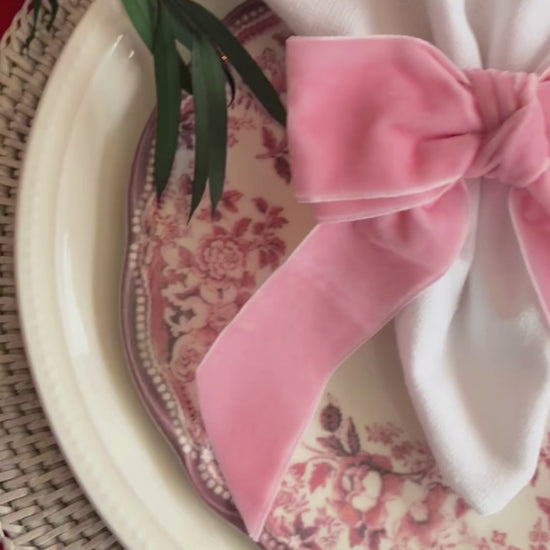 Velvet Pink Bow Napkin Rings - Set of 6
